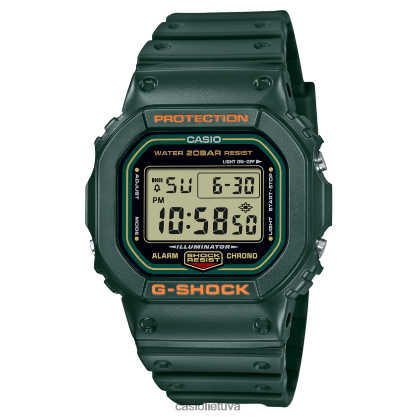 1983 m. g-shock pirmą kartą pakeitė laiko matavimą savo naujovišku tvirtumu. dw5600rb-3 atkuria pirmąjį žalios spalvos (1991 m.) g-shock laikrodį, kuris buvo parduotas už Japonijos ribų. Šiame modelyje yra auksinis LCD ekranas, panašus į naudotą originaliame dizaine.