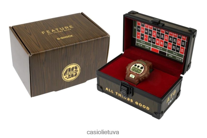 G-shock ir funkcija, garsus aukščiausios klasės avalynės ir drabužių parduotuvėlė, suvienijo jėgas, kad sukurtų specialaus leidimo, vegas įkvėptą laikrodį, skirtą g-shock 40-mečiui. Dw6900ftr23b5 įkvėpimo semiasi iš ikoninio 6900 serijos ir perima užuominas iš funkcijos gimtojo miesto šaknų Las Vegaso širdyje. Su ryškiomis rudos ir žalios spalvos spalvomis, primenančiomis ruletės stalą, šis naujas laikrodis be vargo sujungia abiejų prekių ženklų esmę. Dar labiau sustiprinant bendrus prekių ženklų pranešimus, funkcijos „viskas gerai“ mantra yra bendradarbiavimo pakuotėje ir puikiai dera su „g-shock“ palikimu – tiekti aukščiausios klasės, patikimus produktus, kuriuos mėgsta vartotojai ir entuziastai. Laikrodžio ciferblatas paryškintas išskirtiniu raudonos ir juodos spalvos langeliu raštu, primenančiu Las Vegaso ruletės ratą, o jo priekyje išdidžiai rodomas logotipas. semdamasis įkvėpimo iš kazino scenos, laikrodis gali pasigirtis auksinis IP priekinis žibintas ir funkciniai mygtukai, taip pat ikoninis g-shock logotipas ir ryškiai žalia g simbolis, simbolizuojantis žalią, veltinio kazino stalo apkalą. riboto leidimo laikrodyje yra pusiau permatoma dervos juosta, panaši į medinę plokštę, esančią visame ruletės stale.