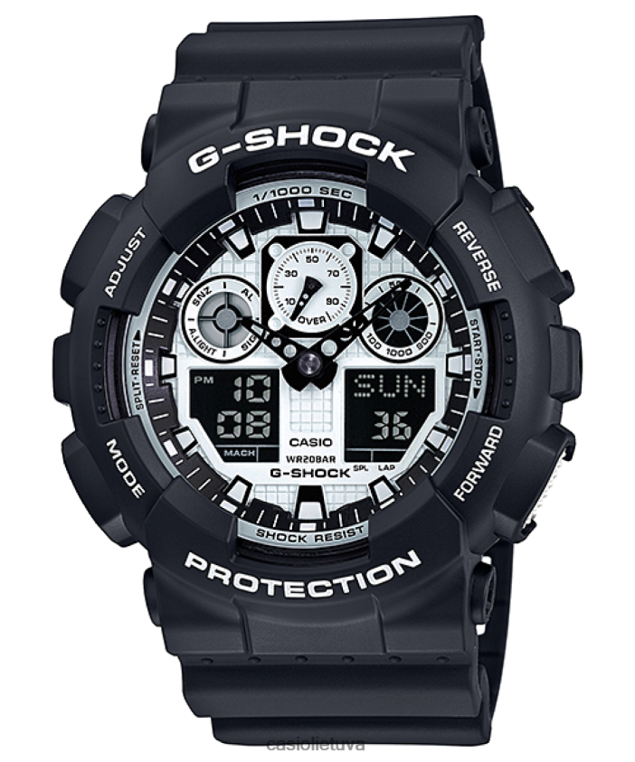 baltos ir juodos spalvos serijos šis naujas baltos ir juodos spalvos „g-Shock“ modelis yra juodos spalvos, kompensuojamos naudojant baltus akcentus. rezultatas – paprastas, bet galingas monotoniškas dizainas.