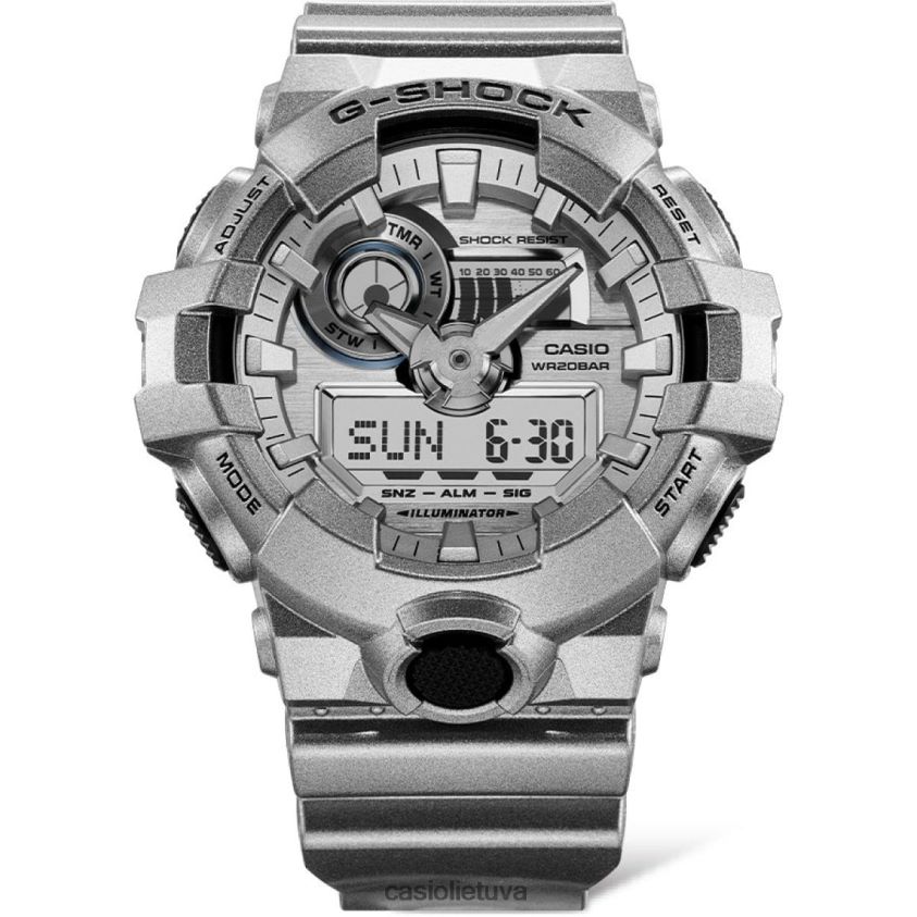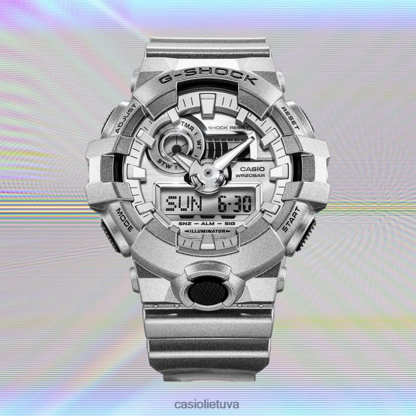 Pristatome g-shock ga700ff-8a – pramoninio prašmatnaus ir futuristinio dizaino derinį iš mūsų ikoniškos užmirštos ateities kolekcijos. laikrodis, kuris ne tik rodo laiką, bet ir pasakoja istoriją apie praeityje numatytą ateitį. Puoštas metaline sidabro danga, ga700ff-8a liudija apie g-shock įsipareigojimą naujovėms. jo tvirtą dizainą sustiprina sidabro garų nusodinimas ant ciferblato, sukuriantis stulbinantį vizualinį kontrastą su metalinio atspalvio kampiniais indeksais. ši estetika primena retro mokslinę fantastiką, suteikdama laikrodžiui unikalų, nesenstantį patrauklumą. ga700ff-8a taip pat nenusileidžia funkcionalumui. Išlikdamas ištikimas „g-shock“ principui, jis sukurtas taip, kad atlaikytų atšiauriausias sąlygas, išlaikant stilingą patrauklumą. metaliniai dažai ne tik suteikia jo išvaizdai, bet ir patvarumui, todėl yra puikus aksesuaras šiuolaikiškam, nuotykių trokštančiam asmeniui. Prisijunkite prie mūsų kelionėje į pamirštą ateitį. Žingsnis į g pasaulįŠoko ga700ff-8a ir patirkite laikrodį, kuris pranoksta laiką, kuriame praeities nostalgija susitinka su ateities naujovėmis.
