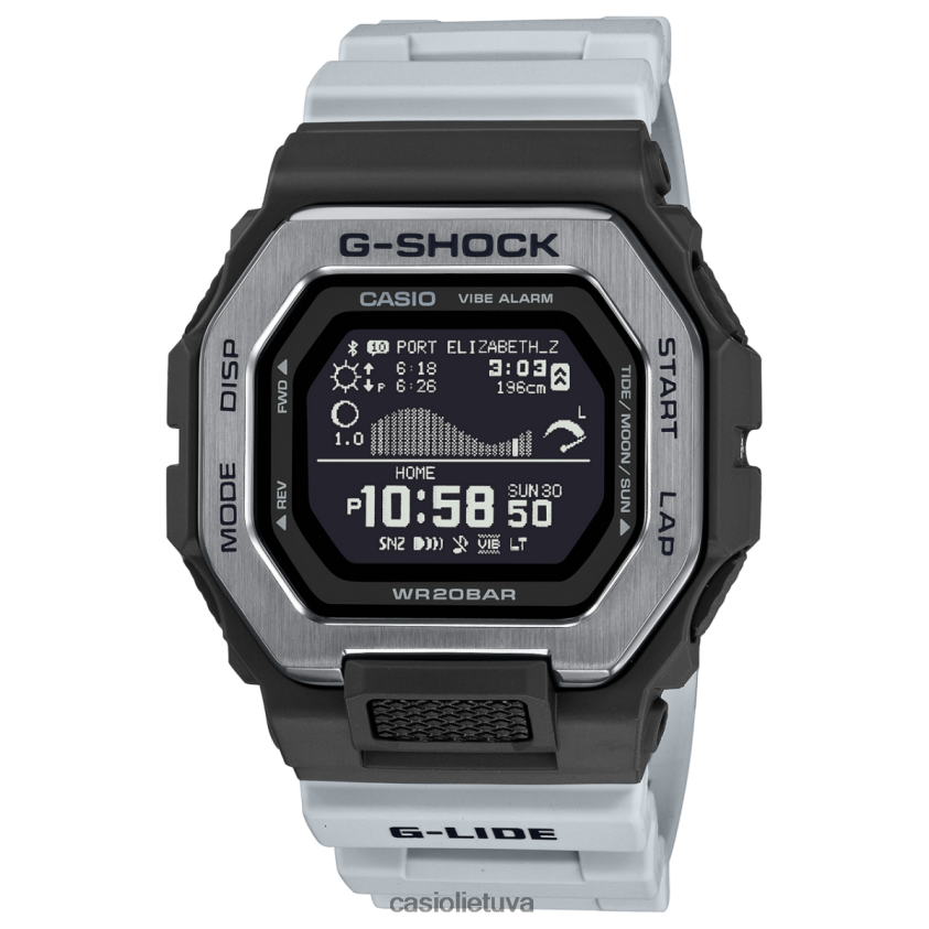 Važiuokite vakar dienos bangomis, gaukite šiandienos bangas keliaujančiame laiku g-lide.gbx-100 su išmaniaisiais telefonais susieti laikrodžiai keliauja tarp šiandieninės spalvingos banglenčių paletės ir nostalgiškos monochrominės spalvos, įkvėptos nespalvotų naršymo internete nuotraukų praėjo dienos. Tiesiog nustatykite specialią išmaniojo telefono programą bet kurioje iš 3300 banglenčių vietų visame pasaulyje, kad patikrintumėte potvynių modelius ir dienos šviesos sąlygas ten, kur esate. platus laikrodžio ciferblatas su didelės skiriamosios gebos atmintimi pikselių (mip) LCD ekrane aiškiai rodo potvynių ir atoslūgių grafikus, mėnulio amžių, potvynių ir atoslūgių laikus ir lygius bei saulėtekio ir saulėlydžio laikus – visa tai vienu žvilgsniu.