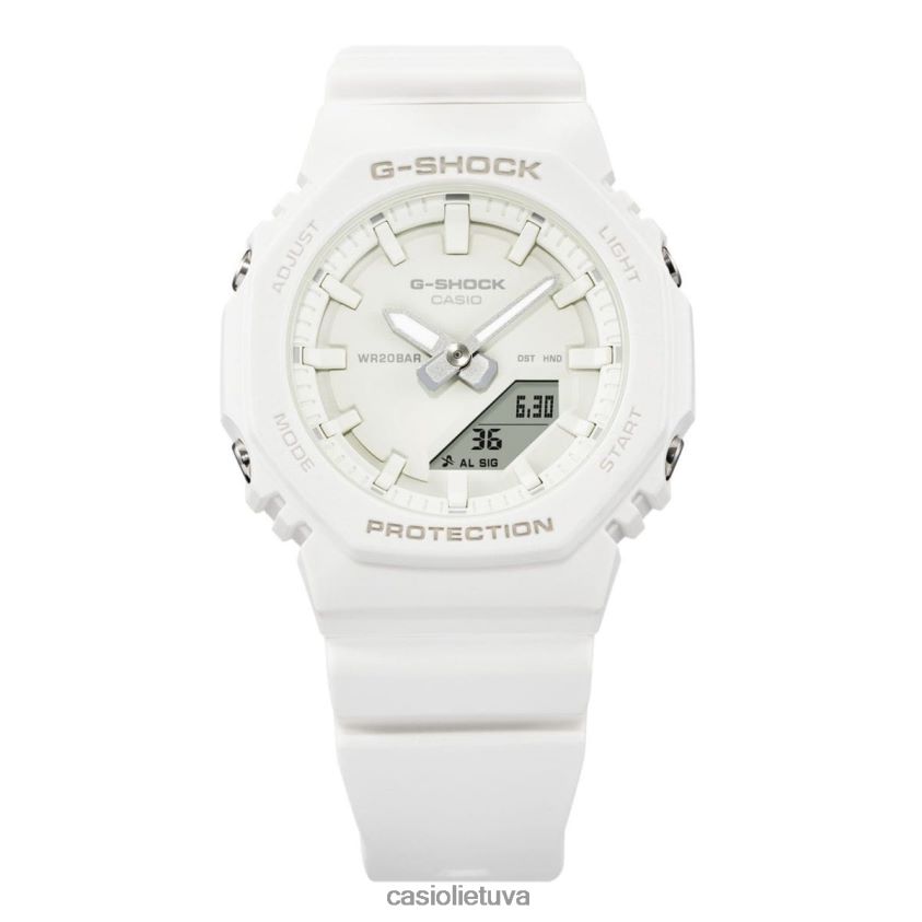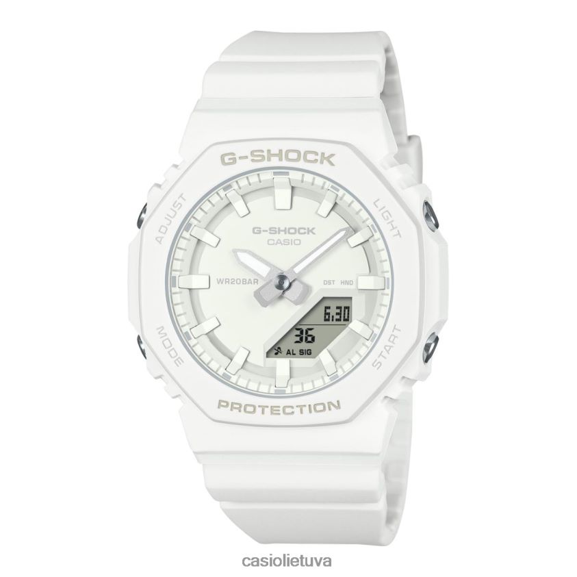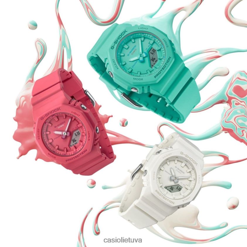 Mėgaukitės vis populiarėjančia skaitmenine analogine g-shock išvaizda, patogiau nei bet kada anksčiau. gmap2100 turi ir taip kompaktišką gmas2100 dizainą, todėl jis yra dar plonesnis ir kompaktiškesnis, o juostos ilgis taip pat trumpesnis, kad tilptų mažesni riešai su visišku komfortu. Monochromatinė ryškių spalvų apdaila – dinamiška turkio mėlyna (nauja spalva), ryškiai rožinė ir klasikinė balta – pakelia nuotaiką, o 9 val. įdėtas ciferblatas iš originalaus gmas2100 paliekamas supaprastintam, minimalistinė išvaizda. Stilingas, bet praktiškas laikrodžio ciferblatas turi ciferblatą, logotipą, rodyklės žymes, rodykles ir kitus komponentus, pagamintus skirtingų tos pačios spalvos atspalvių, tuo pačiu metu išryškinančius rafinuotumą ir užtikrinantį lengvą skaitymą. Šių laikrodžių rėmelis ir apyrankė yra pagamintas iš biologinės dervos, pagamintos iš atsinaujinančių organinių išteklių – medžiagos, kuri, kaip tikimasi, padės sumažinti CO2 išmetimą ir kitaip sumažinti poveikį aplinkai.