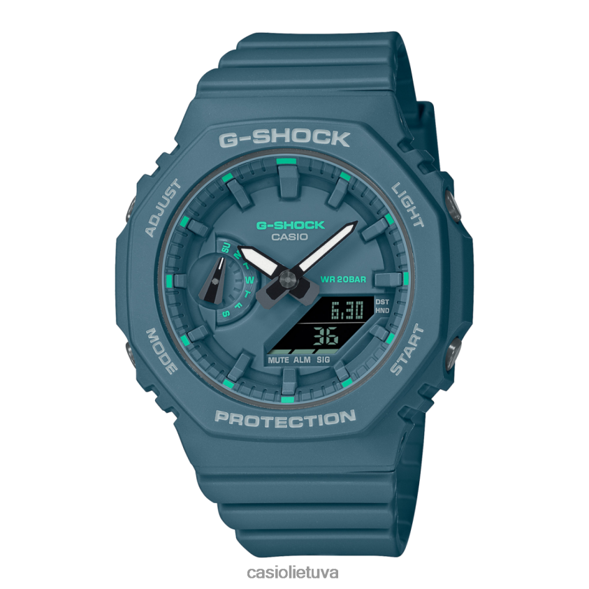 Būkite stilingi ir patogūs su plonesniu, kompaktiškesniu analoginiu-skaitmeniniu gma-s2100 su šiuolaikiškais žaliais akcentais. Plokščias veidas ir paprasti brūkšninio indekso ženklai susijungia į supaprastintą, patenkinamą dizainą. Dėl originalaus madingos žalios spalvos suktuko, kuriame rasite tokias detales kaip logotipas, rodyklės ženklas ir LCD, šis laikrodis yra puikus gatvės mados aksesuaras.