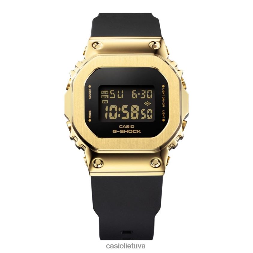 Metalu padengtas aukso ant juodo g-shock mažesnio, kompaktiškesnio profilio.Padengtas aukso jonais, metalinis rėmelis yra elegantiškas prabangus. mygtukai ir sagtis, taip pat padengtos auksu, yra suderintos su juoda spalva, kad būtų sukurtas kontrastas, dėl kurio metalas tikrai spindėtų. Aukso prabanga, derinama su juodos spalvos stiprumu ir blizgančiu grožiu, kuris yra unikalus.