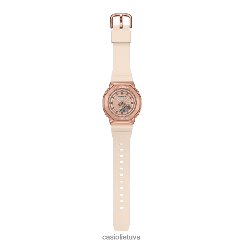 Blizgesys ir spindės rožiniu auksu ant rožinės smėlio spalvos mažesniame, kompaktiškesniame g-shock. padengtas rausvo aukso jonais, o metalinis dangtelis visą laiką rodo aukščiausios kokybės eleganciją. sagtis, taip pat padengta rožiniu auksu, gražiai kontrastuoja su rožinės smėlio spalvos juostele, kad metalas iš tikrųjų spindėtų. Įslystų į blizgantį rožinį auksą, perduotą užtikrinto rafinuotumo.