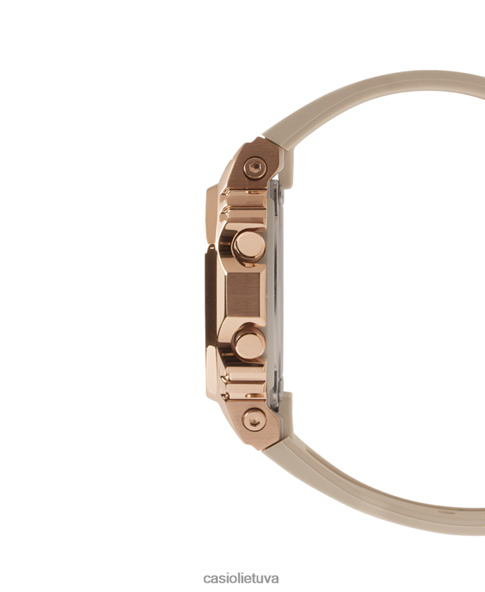 Sumažintas ikoninės 5600 serijos modelis, dekoruotas prabangiu metalu. kvadratinis gm-5600 dizainas, kuris buvo naudojamas nuo pirmojo modelio, buvo sumažintas, kad būtų lengvas ir patogus. rėmelio dangtelis pagamintas iš metalo su rausvo aukso jonų danga, o apyrankė yra elegantiška smėlio spalvos g-shock juosta.