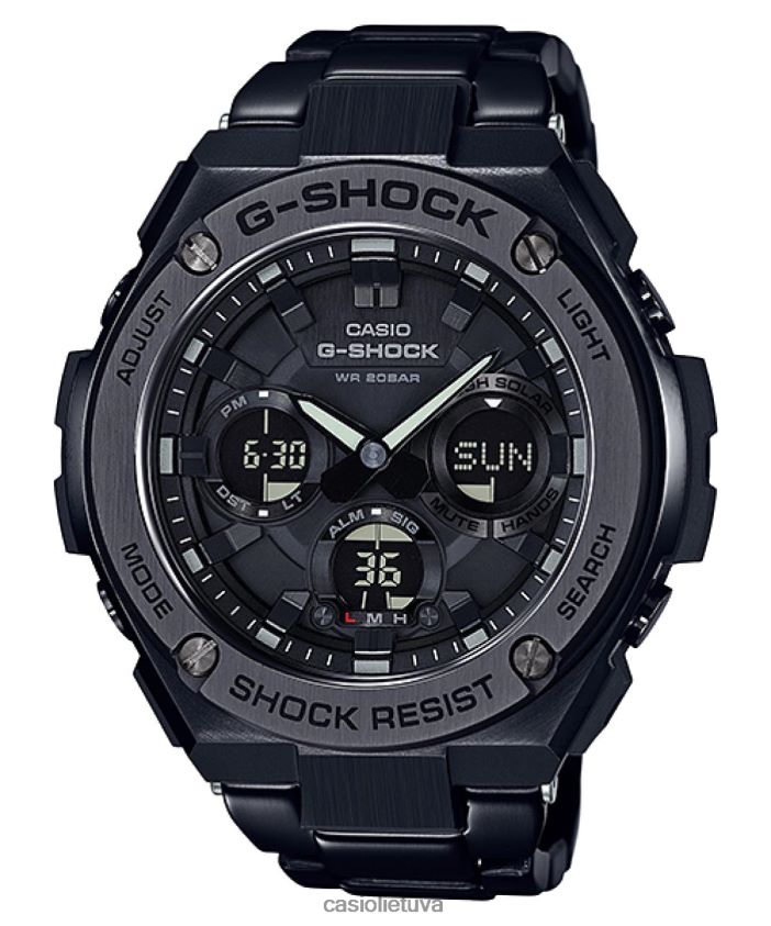 Iš g-shock, laikrodžių prekės ženklo, kuris nuolat nustato naujus laiko matavimo tvirtumo standartus, pristatomi nauji g-steel modeliai, laikrodžių serija su nauja apsauginio sluoksnio struktūra*. Drąsaus dizaino gst-s110bd pagrindiniame g-shock prekės ženklo juoda kartu su jonais padengtu dėklu ir juostele. bendrą juodą šio modelio spalvą kompensuoja baltos valandų ir minučių rodyklės, skirtos prašmatniam ir šauniam dizainui. Tvirta saulės energijos sistema užtikrina praktiškai nepertraukiamą veikimą, o rankinio perjungimo funkcija laikinai patraukia rankas nuo kelio paspaudus mygtuką mygtukas, kad būtų lengva skaityti skaitmeninio ekrano turinį. Dvigubas veido apšvietimas leidžia lengvai perskaityti veidą ir skaitmeninį ekraną net ir tamsoje. Naujasis g-steel modelis yra puikus įvairių tipų medžiagų, naujos struktūros ir madingo dizaino derinys. Tvirtas saulės energijos rankinio perjungimo elementas turi dvigubą LED lemputę (visiškai automatinis apšvietimas)*apsauginio sluoksnio struktūra.tance.