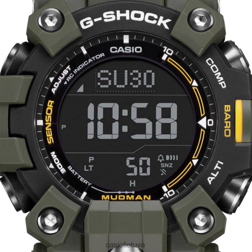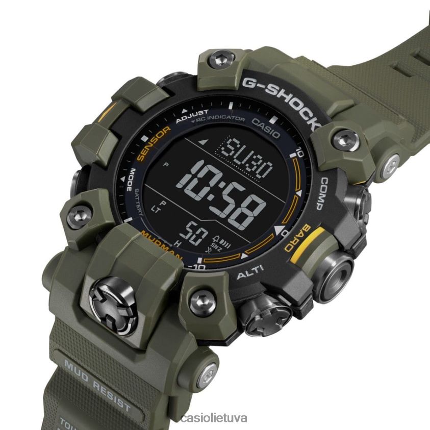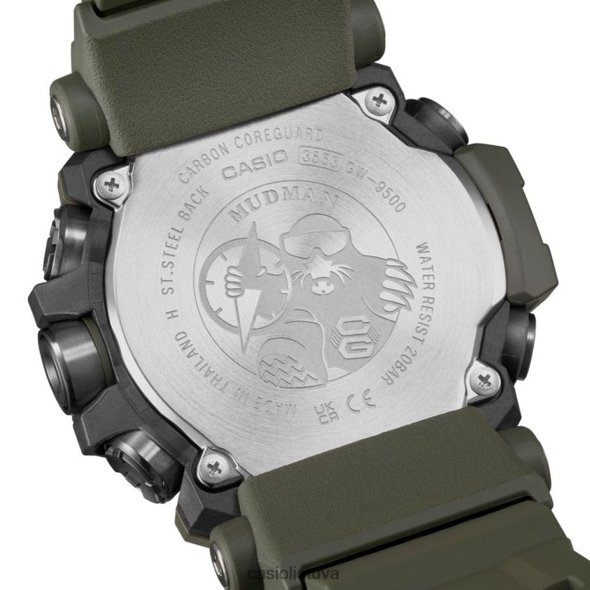 Tamsiai žalias g-shock purvas: kur tikslumas ir galianirkite giliai į neprilygstamo patvarumo karalystę su g-shock meistru g mudman žavinga tamsiai žalia spalva su įmantriomis juodomis detalėmis. šis spalvų derinys ne tik suteikia teiginį; tai liudija apie dėvėtojo meilę elegancijai, susipynusiam su tvirtumu.trigubo jutiklio dizainas aistringam tyrinėtojuiskirtas profesionalams, kurie leidžiasi į sudėtingiausias aplinkas, šis laikrodis išsiskiria galingomis trijų jutiklių galimybėmis. . purvo žmogaus skiriamasis bruožas yra jo bekompromisė purvui atspari konstrukcija, užtikrinanti, kad net labiausiai varginančiose vietovėse nepakenks jo funkcionalumas.Funkcinis tobulumas iki mygtukųnesvarbu, ar tai būtų didelis, patogus priekinis mygtukas ar trys tiesioginiai jutiklių mygtukai, kurių kiekvienas buvo kruopščiai sukurtas taip, kad greitai nusausintų purvą ir vandenį. cilindro formos nerūdijančio plieno komponentai apsaugo šiuos mygtukus, o tarpinės jungiamosios detalės apsaugo mygtukų velenusnuo purvo ir dulkių, paruošdami jus bet kokiems nuotykiams.Rodomos naujovės: dviejų sluoksnių LCDpurvo žmogus ne tik nurodo laiką; tai kalba apie nuotykių ieškotoją tavyje. Naudodami dviejų sluoksnių LCD, pasiekite svarbius duomenis, tokius kaip aukštis virš jūros lygio, temperatūra ir barometrinis slėgis tiesiai iš riešo. novatoriška anglies šerdies apsaugos struktūra kartu su plono modulio dizainu aprėpia šias funkcijas plonoje ir kompaktiškoje formoje, todėl jausitės patogiai.daugiau nei laikrodis: navigatorius ant riešoskaitmeninis kompasas , patobulintas dviejų sluoksnių LCD ekranu, yra jūsų patikimas partneris dar nežinomose teritorijose. jo viršuje rodoma ryški kompaso grafika, o laikas ir kiti svarbūs rodmenys yra apačioje. Su modeliais, tokiais kaip gw-9500-3 ir gw-9500-1a4 su neigiamu dviejų sluoksnių LCD ekranu, jūsų laikrodis tampa naujausių technologijų simboliu.Varomas saulės, paruoštas nakčiaižingsniu toliau žengiant naujoves, purvo žmogus yra su radijo bangomis valdoma saulės energija, užtikrinančia tikslumąskaičiuojant laiką, naudojant šviesos galią. Super iliuminatoriaus funkcija garantuoja, kad net tamsiausiuose kampuose jūsų laikrodis spindės ryškiai.tvarus, bet stilingastamsiai žalias dėklas, rėmelis ir uretano juosta yra ne tik estetikos stebuklai. jie yra pagaminti iš biologinės kilmės dervų, pabrėžiant Casio įsipareigojimą naudoti atsinaujinančius išteklius. ir kaip linktelėjimą į palikimą, dėklo nugarėlėje išdidžiai puikuojasi ikoninio purvo apgamo graviūra su kompasu rankoje.