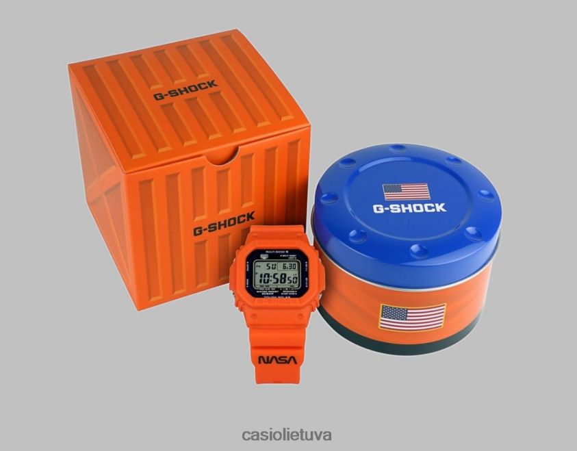Pakilkite su gwm5610nasa4, naujausiu įkvėptu g-shock. šis naujausias modelis, kuriame švenčiamas kosmoso tyrinėjimas, aprūpintas pažangiomis techninėmis galimybėmis, tokiomis kaip tvirta saulės energijos technologija ir kelių juostų 6 atomų laiko matavimas. Sukurtas pagal ikoniškus oranžinius kostiumus, kuriuos dėvėjo astronautai, naujasis modelis atspindi šią garsiąją estetiką su visiškai oranžiniu dėklu ir juostele su Amerikos vėliava, puošiančia juodos juostos kilpą.